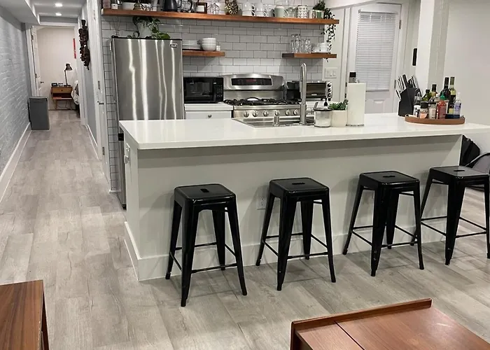 Una cucina completamente attrezzata è disponibile nelle camere dell'appartamento Stylish English Basement Perfect For Long Stays. Inoltre, la struttura si trova a breve distanza a piedi da Bad Saint, che serve cucina filippina. L'aeroporto più vicino è Nazionale di Washington Ronald Reagan, a 15 km da quest’alloggio di 74 m².